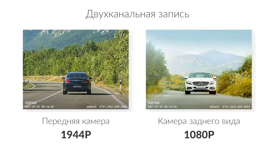 В отличии от модели A500 Xiaomi 70mai Smart Dash Cam Pro Plus A500S позволяет подключить дополнительную FullHD камеру заднего вида и записывать двухканальное видео.