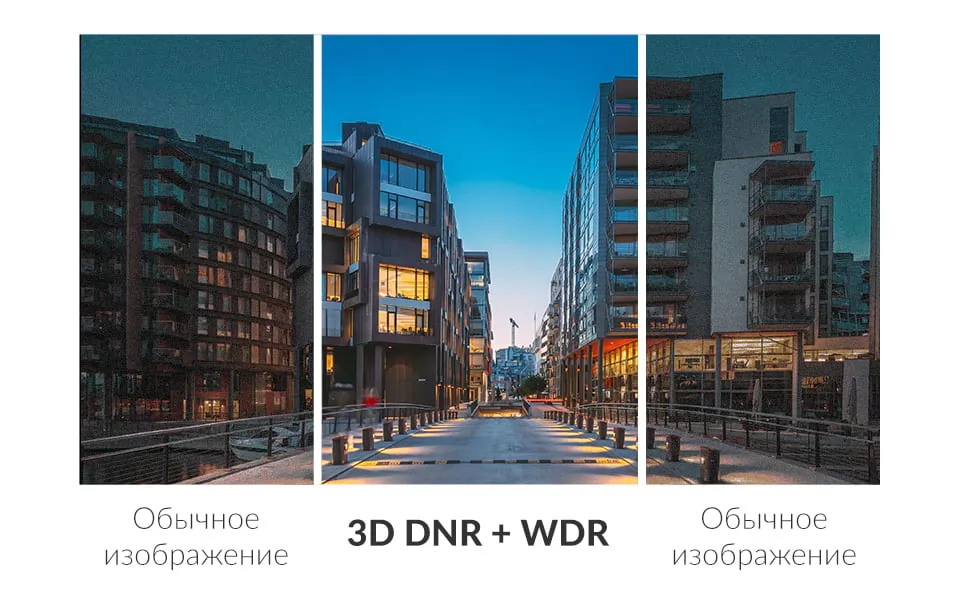 Алгоритмы обработки изображения 3D DNR и WDR значительно улучшают яркость за счет уменьшения шума и регулировки баланса экспозиции при записи в условиях низкой освещенности или в условиях высокой контрастности. Большая диафрагма F1.8 позволяет поглощать больше света.